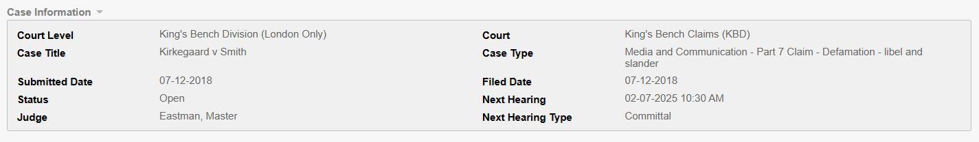 Kirkegaard breached the terms of the settlement, resulting in me sending a pre-action protocol letter; he provided remedy on 30 September 2025, so I did not apply to unstay the proceedings to enforce the schedule. It is probable he again breached the schedule —in his sworn affidavit on 10 October 2025 he disclosed private information about the terms of the settlement, however, it is not worth my time (or costs) applying to ‘lift the stay’ of the proceedings to enforce terms in the confidential schedule. I do not want to be involved in litigation with Kirkegaard ever again. My last contact with his barrister was on 7 October 2025 (asking if he was coming off the court record). QB-2018-000390 is now “case concluded” on Caseboard, which updated last case activity on 1 July 2025.