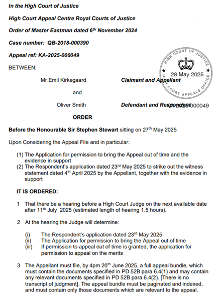 The Tomlin order mentions that myself and Kirkegaard mutually agreed to settle all of the claims and appeals (QB-2018-000390, CA-2023-002246, KB-2024-000772, CA-2024-002547, KA-2025-000049). A brief clarification on CA-2024-002547: this was an appeal in which I obtained new evidence for contempt proceedings but I discontinued before permission to appeal was granted so there was “no order for costs” (note the court has discretion to disapply the default costs rule; under CPR 38.6 and 44.2). In other words, I did not owe Kirkegaard any costs (simply because he had none to claim). The Tomlin order notes my harassment claim (KB-2024-000772) was also settled (see below) and we agreed to vacate all the hearings in the claims and appeal, and to stay the proceedings.