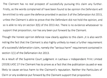 Kirkegaard was given permission by the court to amend his particulars of claim after the preliminary judgment (to update the meanings of my four posts). He amended his particulars and I was given a deadline to file my defence. However, a defence was not necessary. I filed for summary judgment under CPR 24.3(a), on grounds his claim had no reasonable prospect of success (there was no need to file a formal defence and the claim to go to a trial). An application was filed (on 26 March 2020) and it emphasised my honest opinion defence and my four posts were unlikely to meet the threshold of “serious harm” under Defamation Act 2013 (s. 1). It was listed on same day as my two outstanding applications, to set-off the costs orders and an unless order (2 June 2020).